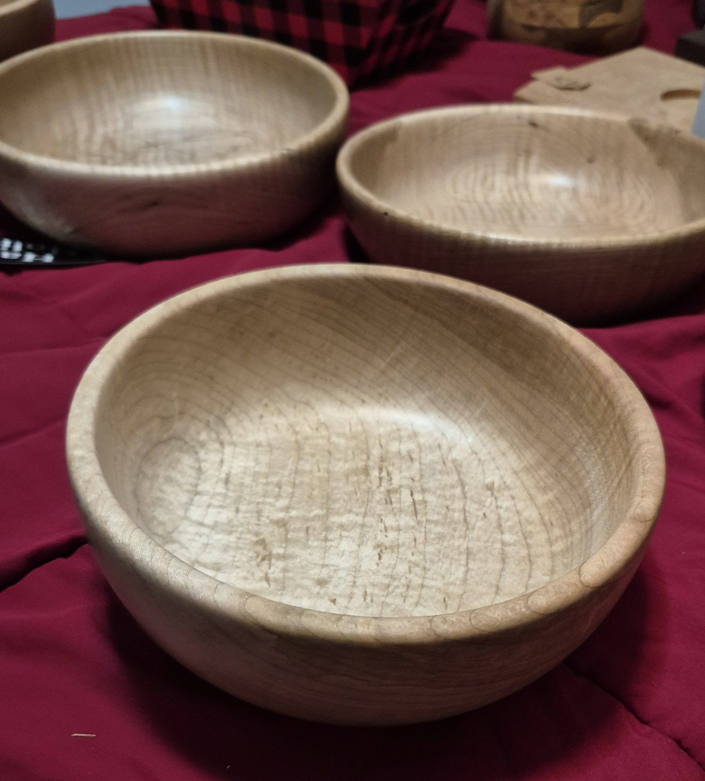 Around the start of Covid, Nick and his dad were doing some house projects. He became familiar with different tools, including a lathe. It started as a hobby. He has continued perfecting his skill because he loves working with wood. He mainly works on the lathe using carbide tip tools. He creates bowls, trees, snowmen, ornaments, and anything else he feels like trying. Nick has also dabbled in epoxy and some tables in the past.